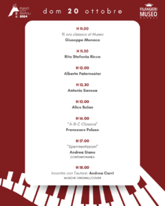 aga come un’esperienza indimenticabile: solo €2, infatti, permetteranno di accedere a una delle giornate dell’intrigante programma di PianoCity al Museo Filangieri.