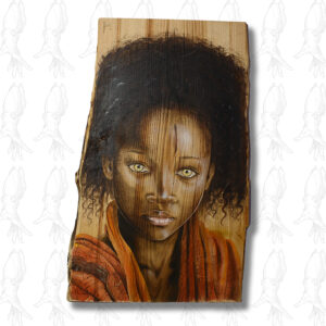 Gli acquerelli su legno e gli acrilici su tela nascono dalla rel-azione tra lo sguardo dell’artista e una suggestione di carne, come l’incontro fortuito con Yvonne, o di carta o web, o, ancora, con volti e storie di mondi dimenticati a Fanelli molto vicini, in particolare l’Africa a cui ha dedicato una serie dal titolo “Madrenera” di cui, come si legge nel catalogo, l’artista dice “siamo tutti figli”.